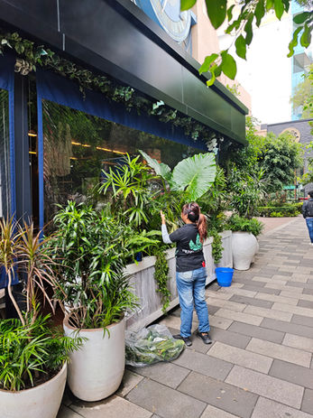 Diseño, instalación y mantenimiento vegetal para restaurantes y espacios comerciales. Transformamos tu local en un oasis sin que tengas que preocuparte por una sola hoja.
